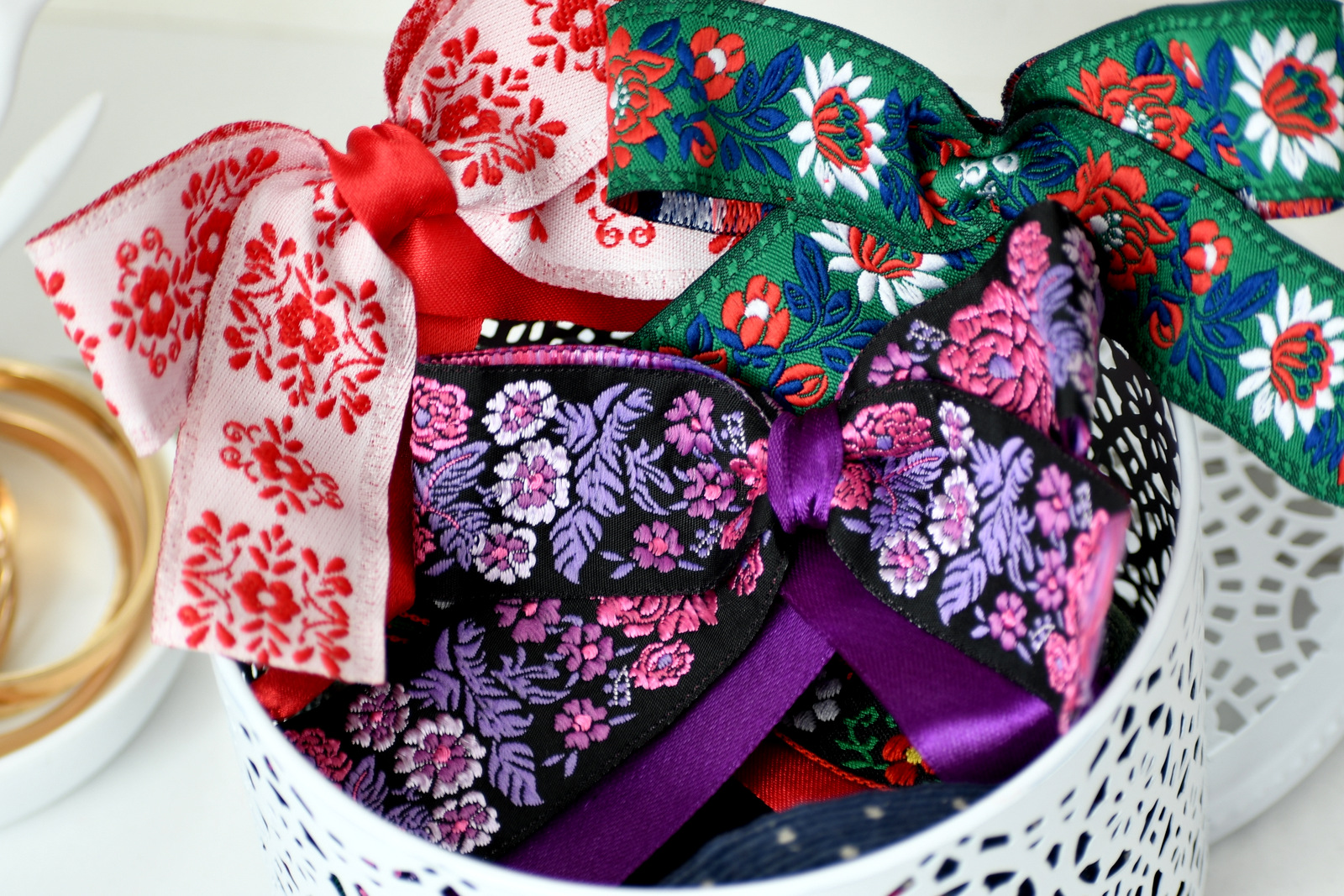Po ušití fialovej mašle z vyšívanej stuhy som si túto ozdobu pod golier košele úplne zamilovala. Postup a článok ako som vyrobila fialovú mašľu si môžete prečítať v prvom článku o tejto krásnej ozdobe. V dnešnom článku vám ukážem ďalšie mašle, ktoré som vyrobila a pripomenieme si aj postup na tenšej stuhe v dvoch farebných variantoch. Poďme na to.