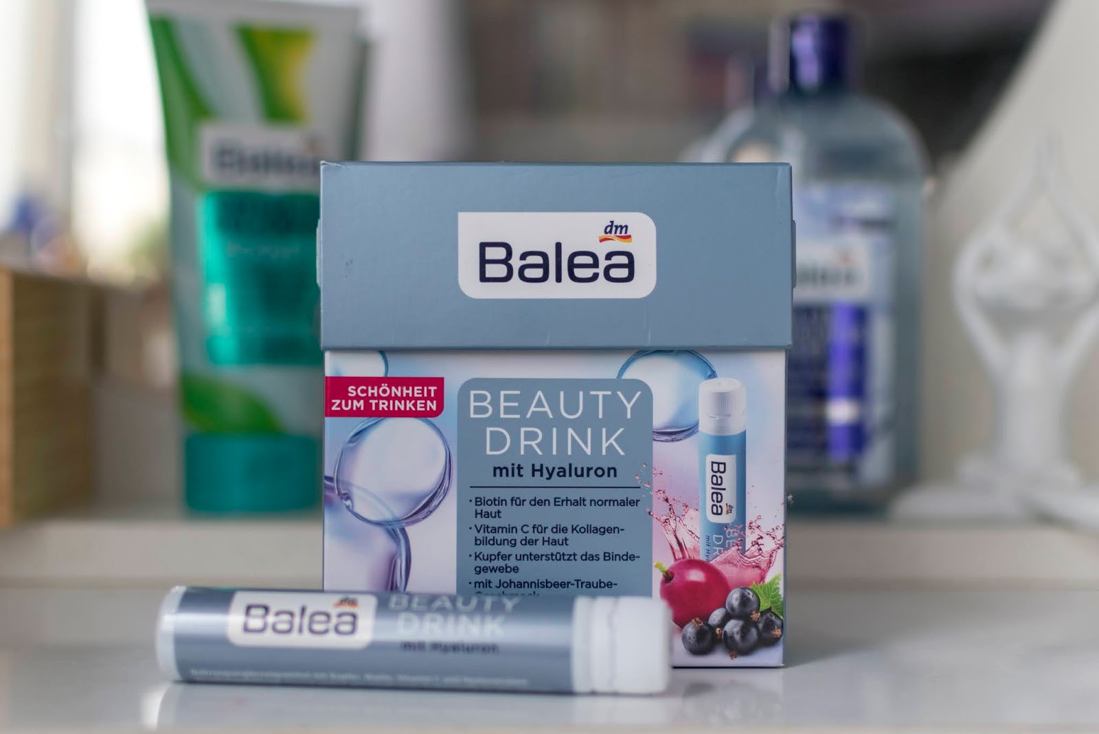 - kúra na pleť na vnútorné užívanie v ampulkách Beauty Drink Hyaluron od Balea