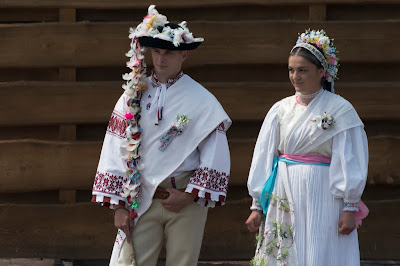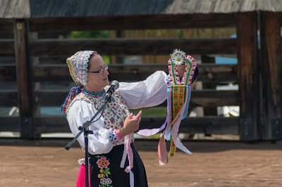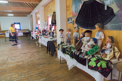 Ďalej sme mali si pozreli výstavu krojovaných bábik pani Kráľovej. Išlo o dosť veľkú zbierku bábik v krojoch, ktoré ušila a vyšila. Niektoré sú ušité aj z pozostatkov modrotlače a podobne. Je to naozaj náááádhera pre oči. Okrem bábik boli na výstave aj jednotlivé súčiastky krojov z rôznych období doplnené dobovými fotkami. Ak si dobre spomínam, tak niektoré bábiky boli ešte po mamine pani Kráľovej. Vystavovateľka mi veľmi ochotne odpovedala na všetky moje zvedavé otázky. Samozrejme som sa spýtala aj na moju najobľúbenejšiu otázku, na ktorú odpoveď má málokto, pretože to nikto nedokumentoval. Kedy a čo nosila na hlave stará dievka. Povedala mi, že to nie je úplne jasné, pretože to bola veľká hanba a plynule sme prešli k prespankám :). Ja to raz zdokumentujem. Zatiaľ som takmer každého touto otázkou zaskočila. K výstave je aj video aha TU. No či ma nájdete :DDD