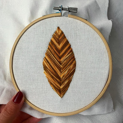 List si môžete vyšiť aj na plátno a urobiť si krásnu jesennú výzdobu. Stačí ho nechať v rámiku na vyšívanie a buď niekde položiť alebo zavesiť. Tento spôsob vyšívania je veľmi efektný, musíte však myslieť na to, že spotrebujete veľa bavlnky.