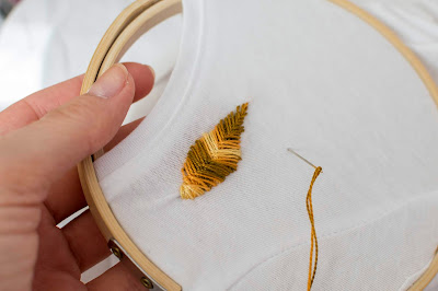 Prvé jesenné dni si môžete skrátiť aj vyšívaním. V predchádzajúcich článkoch som vám ukázala ako si môžete vyšiť jarnú rozkvitnutú lúku, kyticu do rámika, a obdarovať ňou napríklad alergika :), snehovú vločku alebo valentínske srdiečka. V tomto článku nájdete postup ako si vyšiť na tričko listy zahalené do jesenných farieb. Tento postup môžete aplikovať aj na iné kusy vo vašom šatníku. Jesenný list si môžete vyšiť na rifle, vrecko na bunde alebo opäť na plátno a zarámovať a vytvoriť si tak jesennú dekoráciu vo vašom byte alebo v kancelárii. Inšpirujte sa.